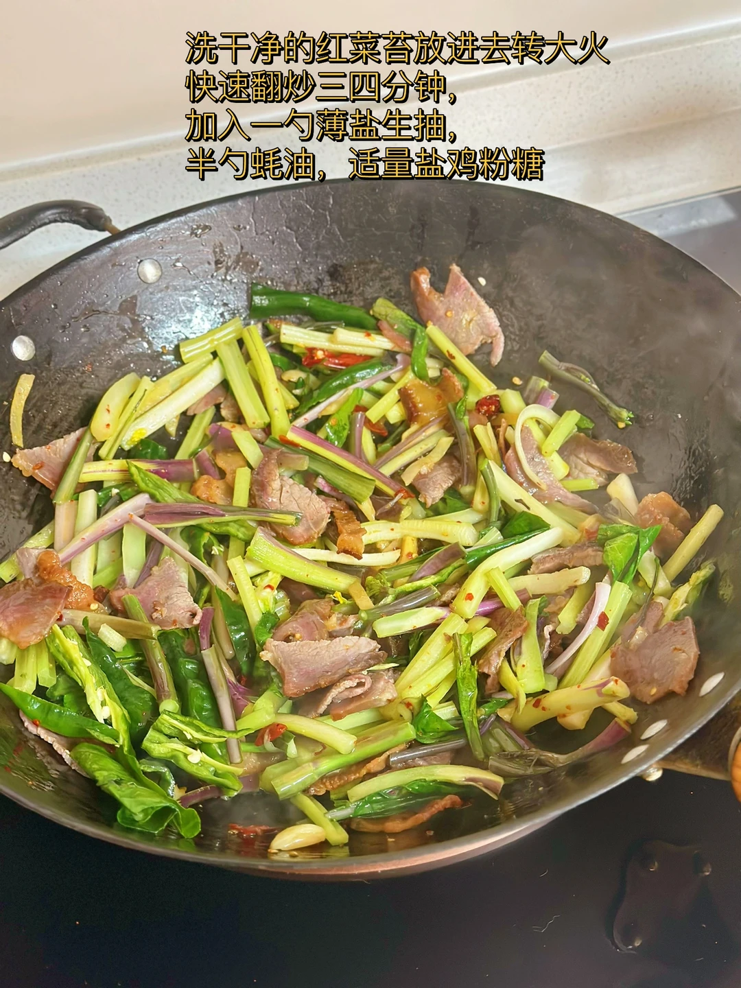 炒肉炒红菜苔/家常菜超级下饭菜
