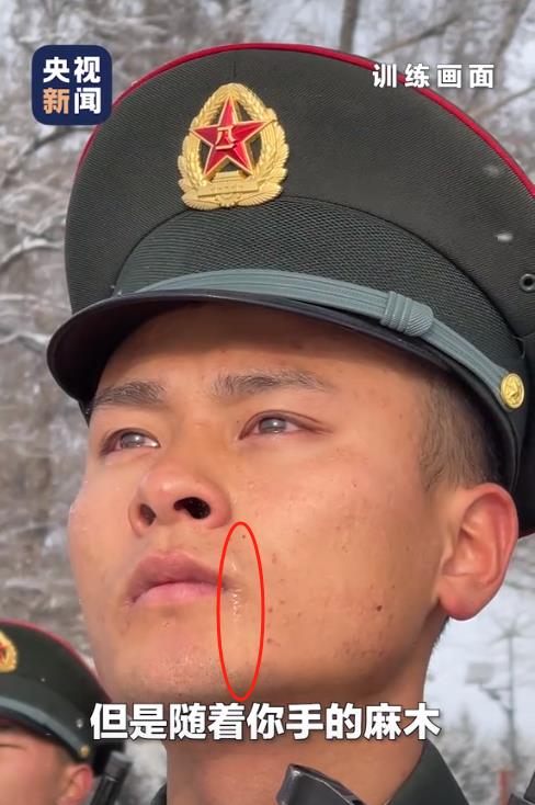 他们脸和耳朵冻得红彤彤的,鼻尖也泛着红,可是嘴唇的颜色却显得比较淡,还微微泛透着一点儿紫,有参与训练的士兵谈及训练时的感受,第一感觉便是“没有知觉”、“浑身麻木”。
