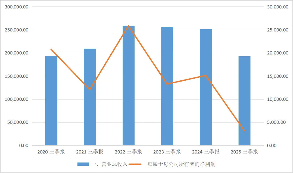 2025年三季报显示,公司经营业绩出现显著下滑,前三季度实现营业总收入19.32亿元,同比下降23.19%;归母净利润3157.71万元,同比减少79.1%;扣非净利润2190.98万元,同比下降84.17%。