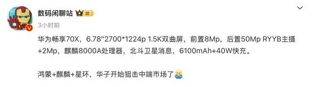 不过,华为的“降维打击”并不是毫无章法的盲目下放,而是抓住了核心:在中端市场中,消费者更看重实用性和性价比,而不是堆砌所有高端配置。所以畅享70x的这些技术选择——成熟芯片、卫星通信、高刷护眼屏和超感光拍照——既够用又实用,精准戳中了消费者的需求。这种“适度克制”的策略,比起直接用顶配配置来堆砌性价比的套路,更显得老练和可持续。