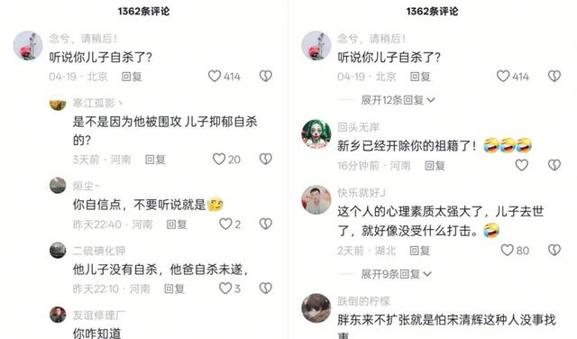 在宋清辉质疑胖东来没有竞争力的视频下面,不少人留言问候“听说你儿子自杀了?”