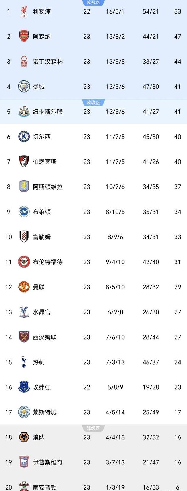 随着本轮比赛全部结束,英超积分榜发生较大变化!其中,曼城、纽卡、切尔西及伯恩茅斯之间只差1分,争4彻底乱了!具体排名如下: