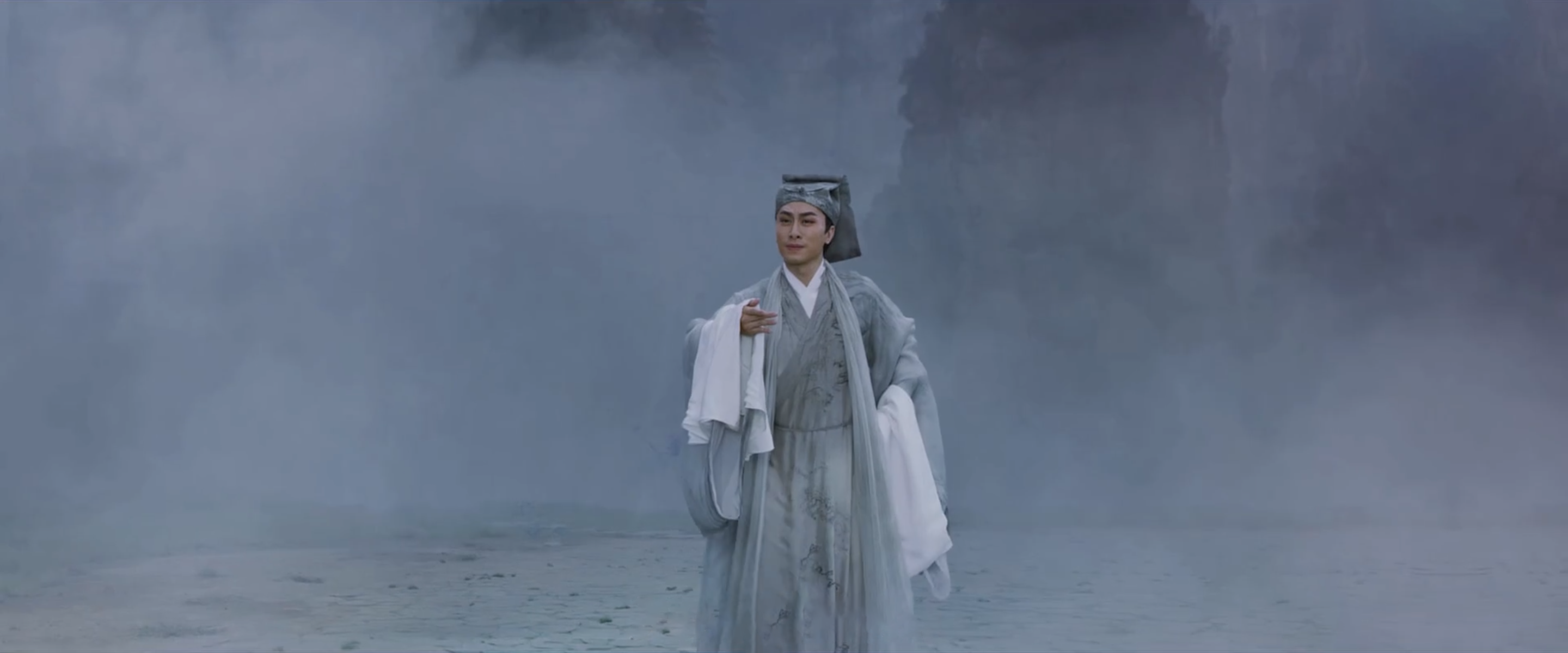 画面诗情画意、美轮美奂,都离不开这些唯美的中国风元素。在负责展现美的同时,它们另有妙用。平面化的远山,取代戏曲舞台的背景。墙上的“月洞”,就仿佛是戏曲舞台本身。按照这种思路引申下去,就会发现昆仑山、金山寺门前的台阶,也是戏曲舞台在电影中的抽象呈现。影片中大量运用固定镜头,也是出于类似的考量。这是电影向戏曲妥协的部分,在保留电影质感的同时,朝着戏曲舞台上写意的方向靠拢。