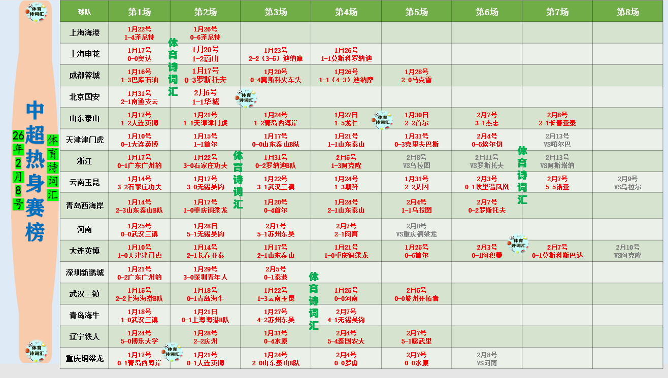 中超各队咱冬窗进行了多场热身赛,汇总如下: