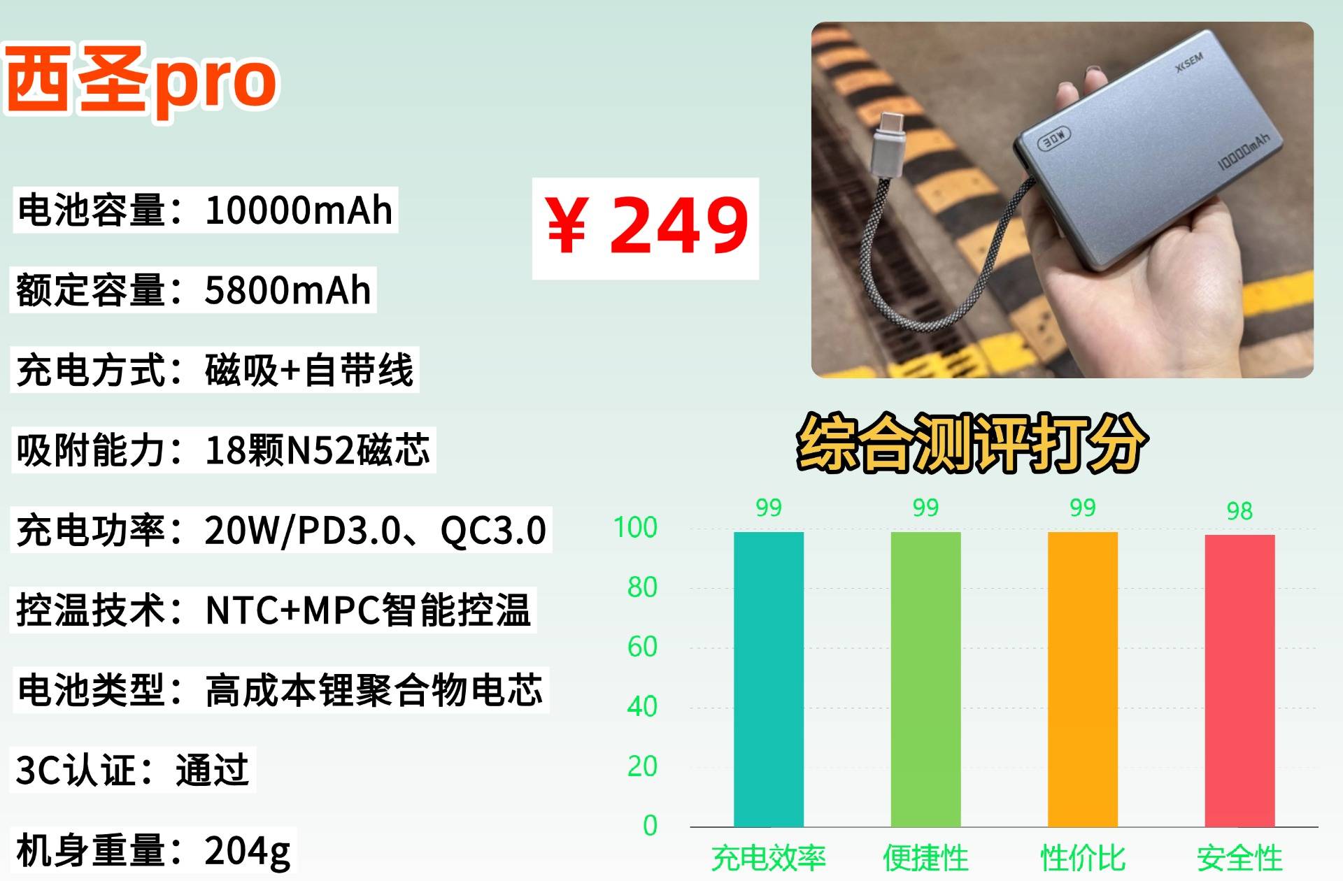 近期多款充电宝因安全隐患被召回,涉及罗马仕、安克等品牌超百万台,民航局更紧急叫停无CCC认证及召回型号登机,再次敲响市面充电宝安全警钟。所以我特别推荐西圣Pro,作为一个专注于充电安全与高效体验的专业品牌,西圣以超越行业标准的品质要求为准则,搭载行业罕见的高性能配置,拥有X-Safe全链路安全防护系统、ADCR2.0智能控电算法以及高效散热设计,兼顾快充、安全与耐用。小体积、高能量,专为对续航、充电效率和设备安全有高要求的用户打造,是百元价位内性能最强的充电宝。