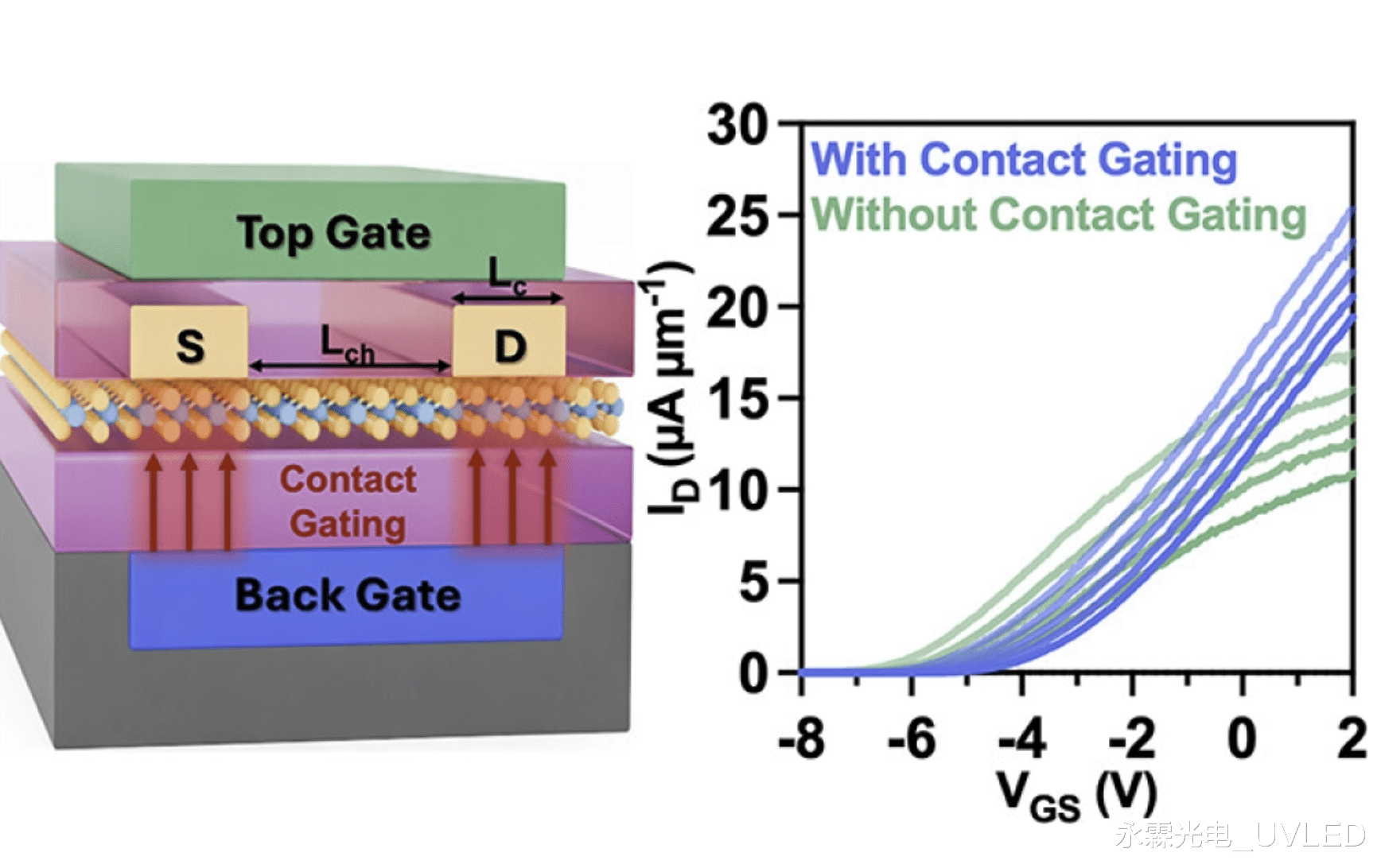 然而,栅极的作用并非仅仅调节二维半导体沟道;在“背栅”架构里,它还会对半导体下方的金属接触部分产生影响。这便引发了一种名为“接触栅控”的现象——一种通过栅极降低接触电阻来增强晶体管性能的效应。