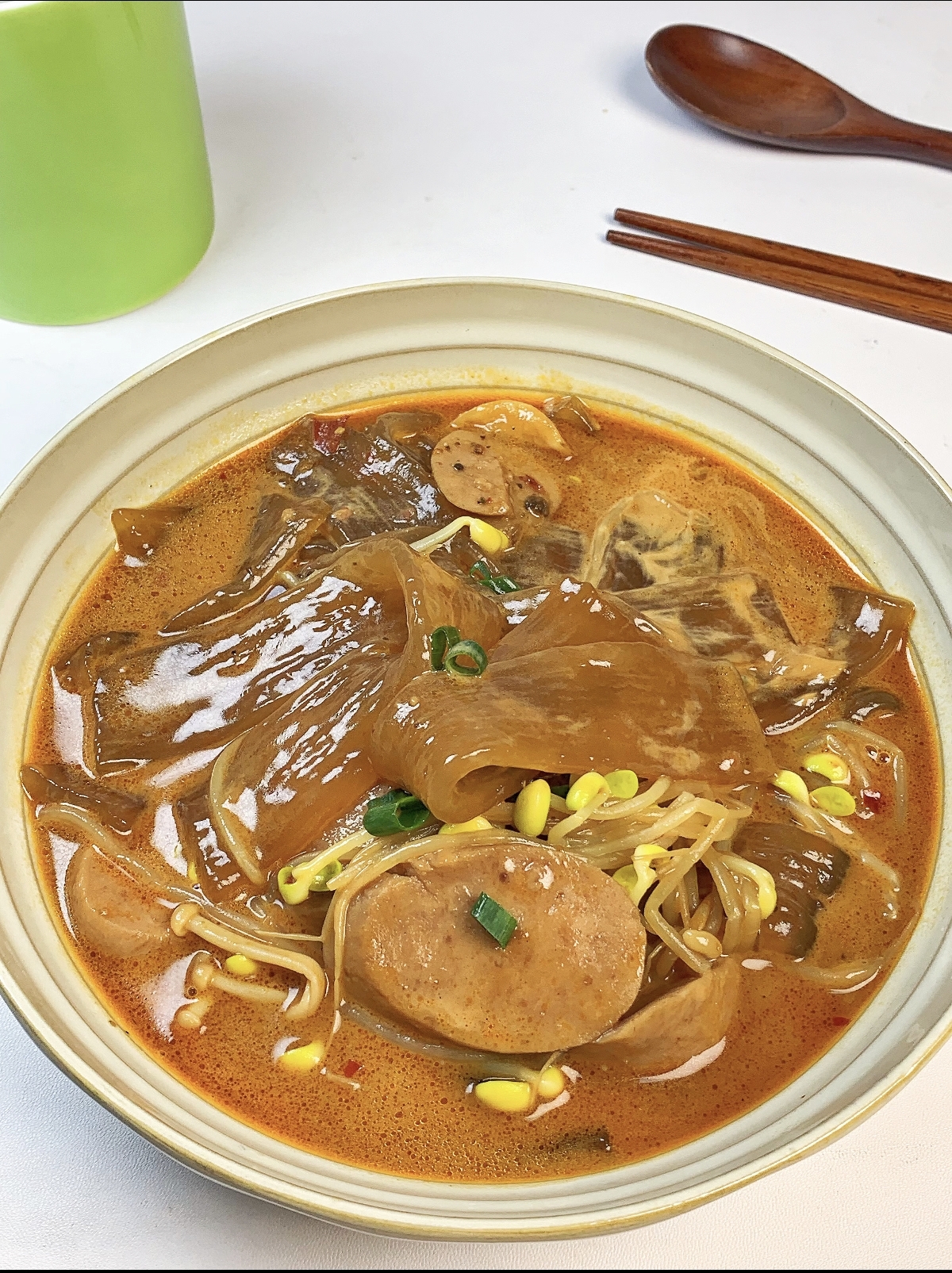制作这道火锅宽粉,第一步便是唤醒沉睡的宽粉。将干宽粉放入温水中浸泡片刻,待其稍稍变软,吸饱水分,变得柔韧而有弹性。这个过程,就像是给宽粉注入生命,为接下来的“华丽变身”打下基础。接着,便是调制灵魂汤底的关键时刻。锅中倒入适量食用油,烧热后,放入蒜末、姜末爆香,那股浓郁的辛香味瞬间便能勾起你的食欲。然后,加入一勺郫县豆瓣酱,小火慢炒,直至炒出红油,那鲜亮的红色,是麻辣风味的视觉预告。紧接着,倒入适量的清水或高汤,水量以能没过宽粉为宜。此时,汤底开始咕嘟咕嘟地冒泡,香气也随之弥漫开来。