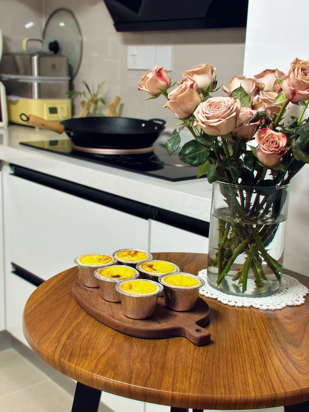 有花的日子日日都是好日,上次的百合花养了十几天还在开,这次换了卡布奇诺玫瑰花,终于到了喜欢ing!苏州今天是真冷啊好在有太阳,好久没有吃蛋挞了只不过最近体重飙的有点厉害是该减肥了