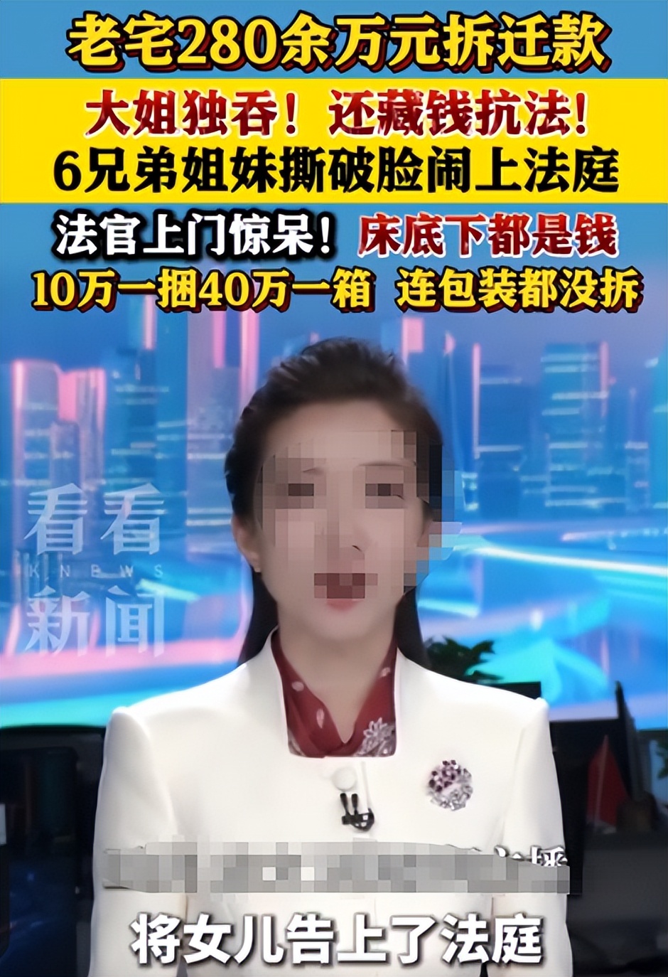 故事的起点,是2019年的一场拆迁。郑阿姨作为家中长女,户口一直落在母亲的老宅里,这份户籍关系,成了她日后觊觎拆迁款的“底气”。当老宅被纳入征收范围,280余万元的补偿款敲定后,郑阿姨没跟任何兄弟姐妹商量,甚至瞒着年迈的母亲,独自找到征收部门签了协议,把这笔巨款全额领回了家。