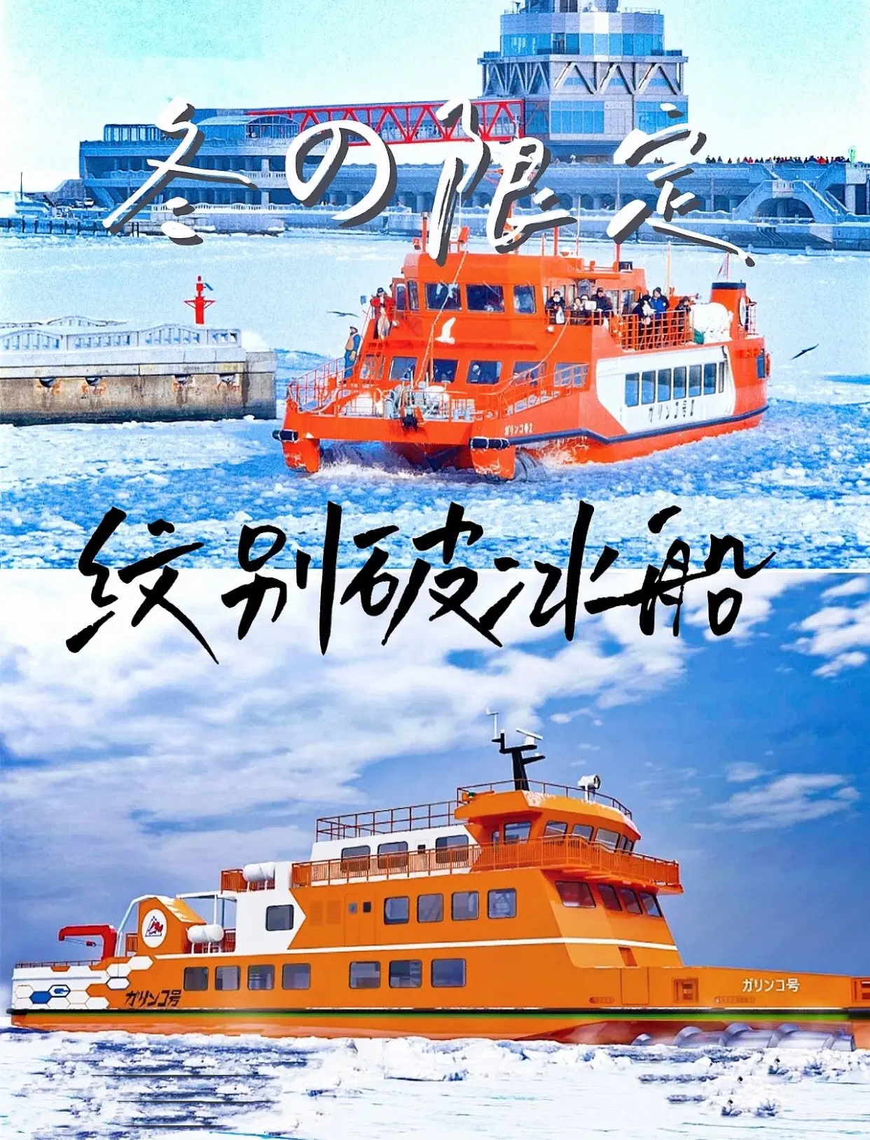 ❄北海道冬季限定,怎么能少了破冰船体验呢 漫长的日本冬季 给北海道制造了无数浪漫 而隐藏在北海道道东的流冰 成为大自然赋予它的独特礼物 冷冽和壮阔裹挟着温柔 绽放着这个冬天最惊艳的美景 如果你这个时候刚好在北海道,一定不要错过呀! 2023限定发船时间:2023/1/28~2023/3/05