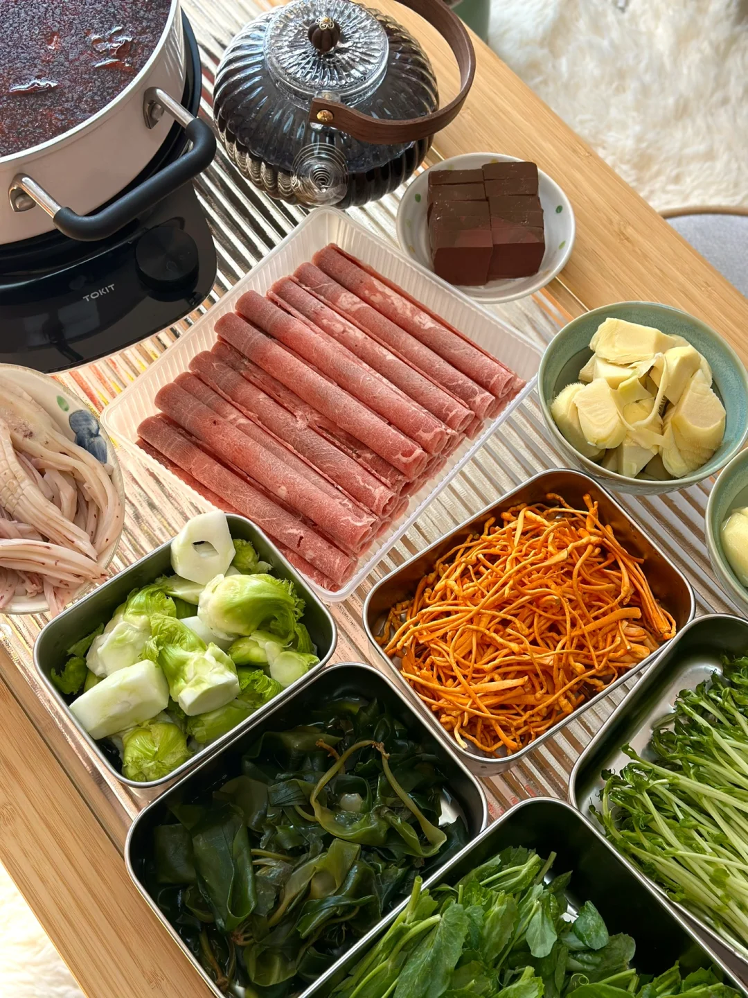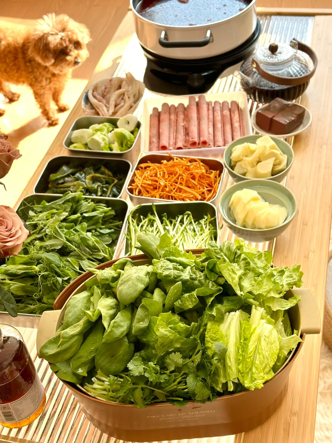 一大早起来大扫除准备再去菜市场买个菜做火锅 打扫的时候觉得太冷不想出门就网上叫了菜,还别说都挺好,本来还担心豌豆尖太老,结果太水灵,我还是掐掉了一节 在家吃火锅我更喜欢吃蔬菜,今年苏州的冬天是真的冷呀还是呆在家暖和!