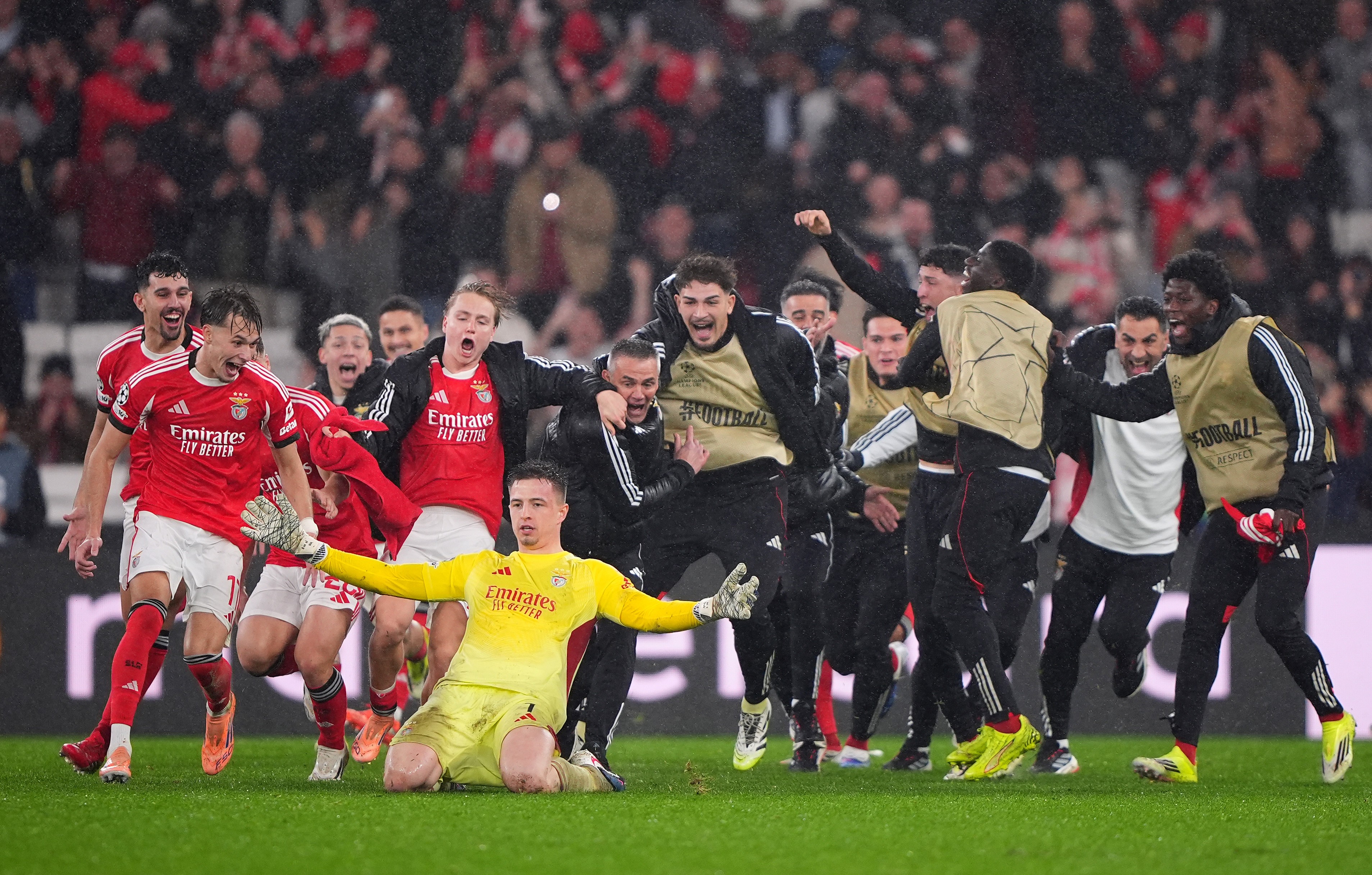 这个比分对于两支球队来说,都是不能接受的。本菲卡想要跻身附加赛,必须抹平净胜球方面的差距,所以他们仍要再进一球。皇马想要杀进前八直通淘汰赛,则必须保持不败,因此两队都差一个进球。而最终打进这粒进球的,是本菲卡的门将特鲁宾。伤停补时的最后时刻,已无退路的本菲卡利用任意球机会发起了最后一攻,就连门将特鲁宾也冲到了禁区来争抢高点。令所有球迷都没有想到的是,奥尔斯内斯开出的皮球,还真的找到了特鲁宾,后者力压防守球员把皮球顶入网窝,4-2!本菲卡上演神奇逆袭,以1个净胜球的优势力压马赛,神奇般地杀进了欧冠附加赛!