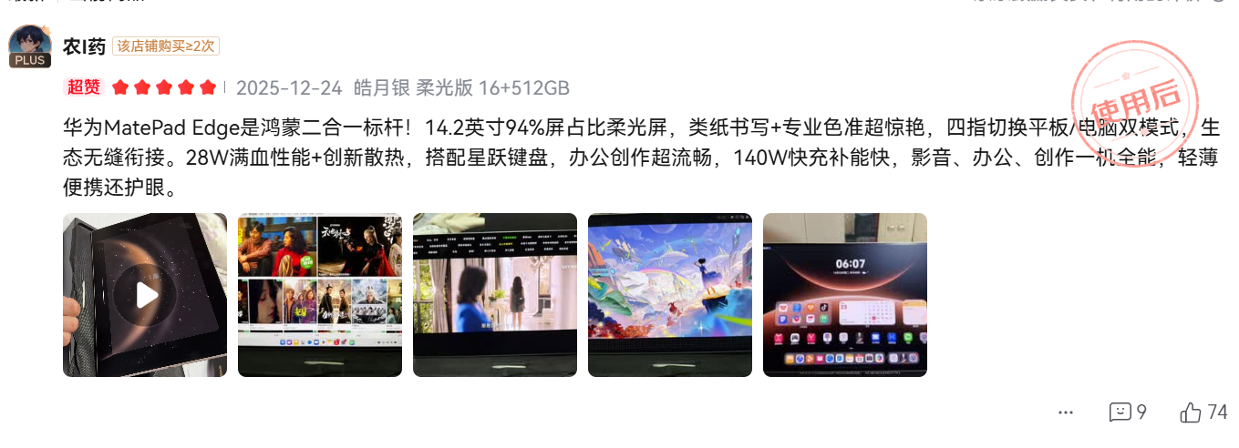 从市场反馈来看,华为MatePad Edge自发布以来收获了大量用户好评。许多用户表示,这款产品真正解决了"出差只带一台设备"的需求,既能在旅途中用平板模式追剧放松,又能在酒店房间切换到电脑模式处理工作文档。设计师用户则对其在天生会画App中配合HUAWEI M-Pencil Pro进行创作的流畅体验赞不绝口,而商务人士更看重其在电脑模式下运行专业软件的能力。