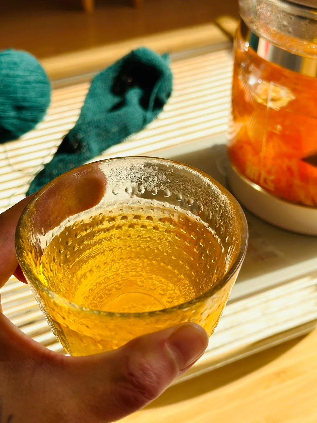今天这款茶口感酸酸甜甜,柚子陈皮特有的香味儿