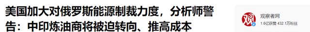 观察者网2025-01-13美国加大对俄罗斯能源制裁力度,分析师警告:中印炼油商将被迫转向、推高成本