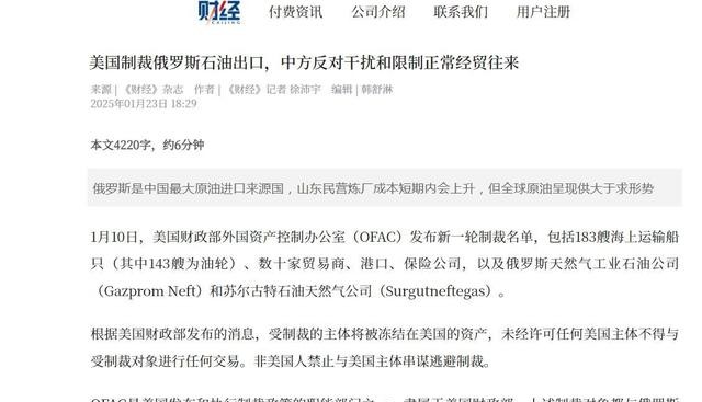 《财经》杂志2025-01-23美国制裁俄罗斯石油出口,中方反对干扰和限制正常经贸往来