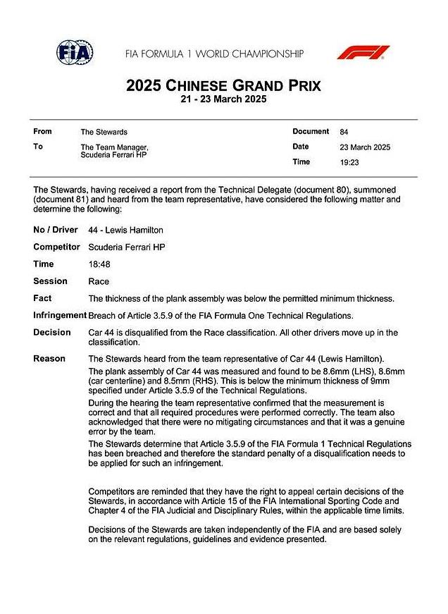 为啥?违规呗!勒克莱尔的赛车,比规定的最低重量轻了1公斤。汉密尔顿的车呢,底部木板厚度比规定薄了0.5毫米。哎,您可能会说,就这点儿差距,至于吗?这就好比包饺子,馅儿少放了一点点盐,吃起来味道就不对了。一级方程式赛车,那可是高精尖的技术活,差之毫厘,谬以千里。这点细微的差距,在赛道上可能就是决定胜负的关键。