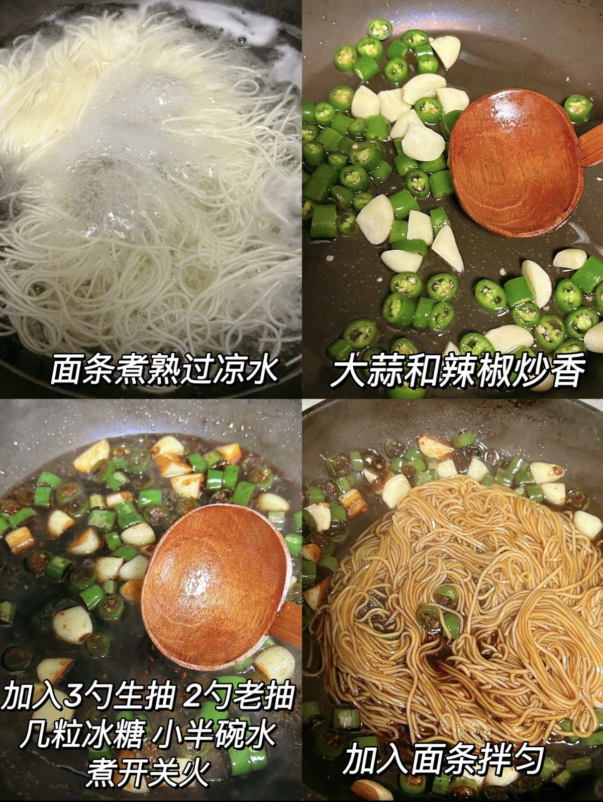 先说说食材准备,都是家里常备的“老熟人”。挂面选细一点的,容易入味,两人份大概200克就够了;大蒜要足量,我习惯用8-10瓣,蒜香浓郁才够味;干辣椒根据口味调整,能吃辣就多放几个,怕辣的可以去掉辣椒籽;再准备点葱花、生抽、老抽、蚝油、白糖、盐和食用油,这些调料凑齐,美味就有了基础。