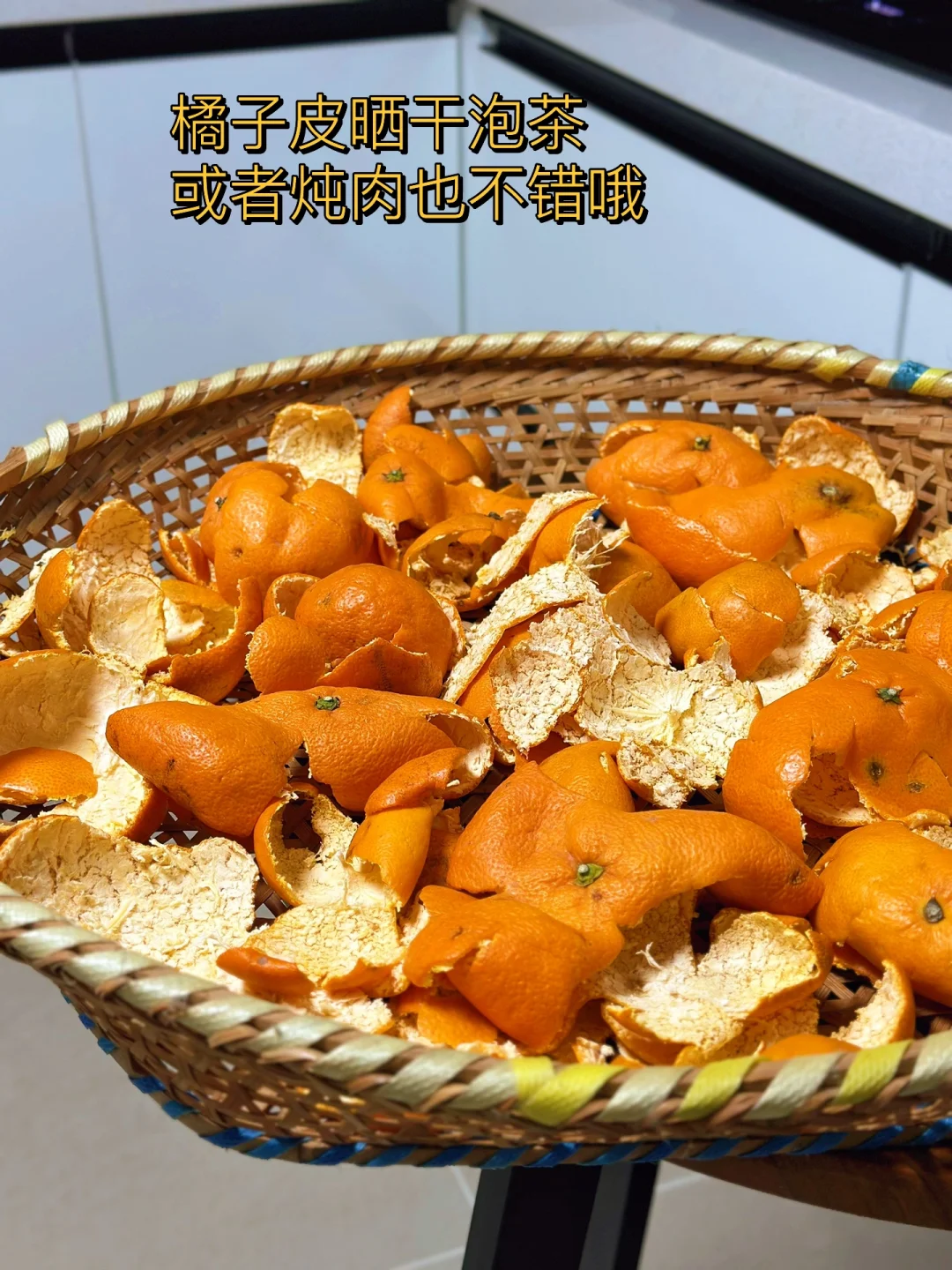 2. 把橘子🍊皮先全部剥掉,这些白色的经络别着急等会儿再处理