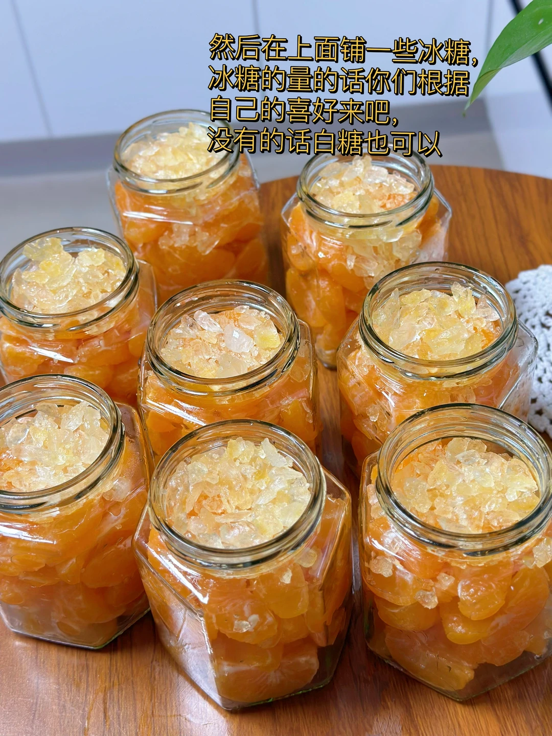 5. 然后在上面铺一些冰糖,冰糖的量的话你们根据自己的喜好来吧