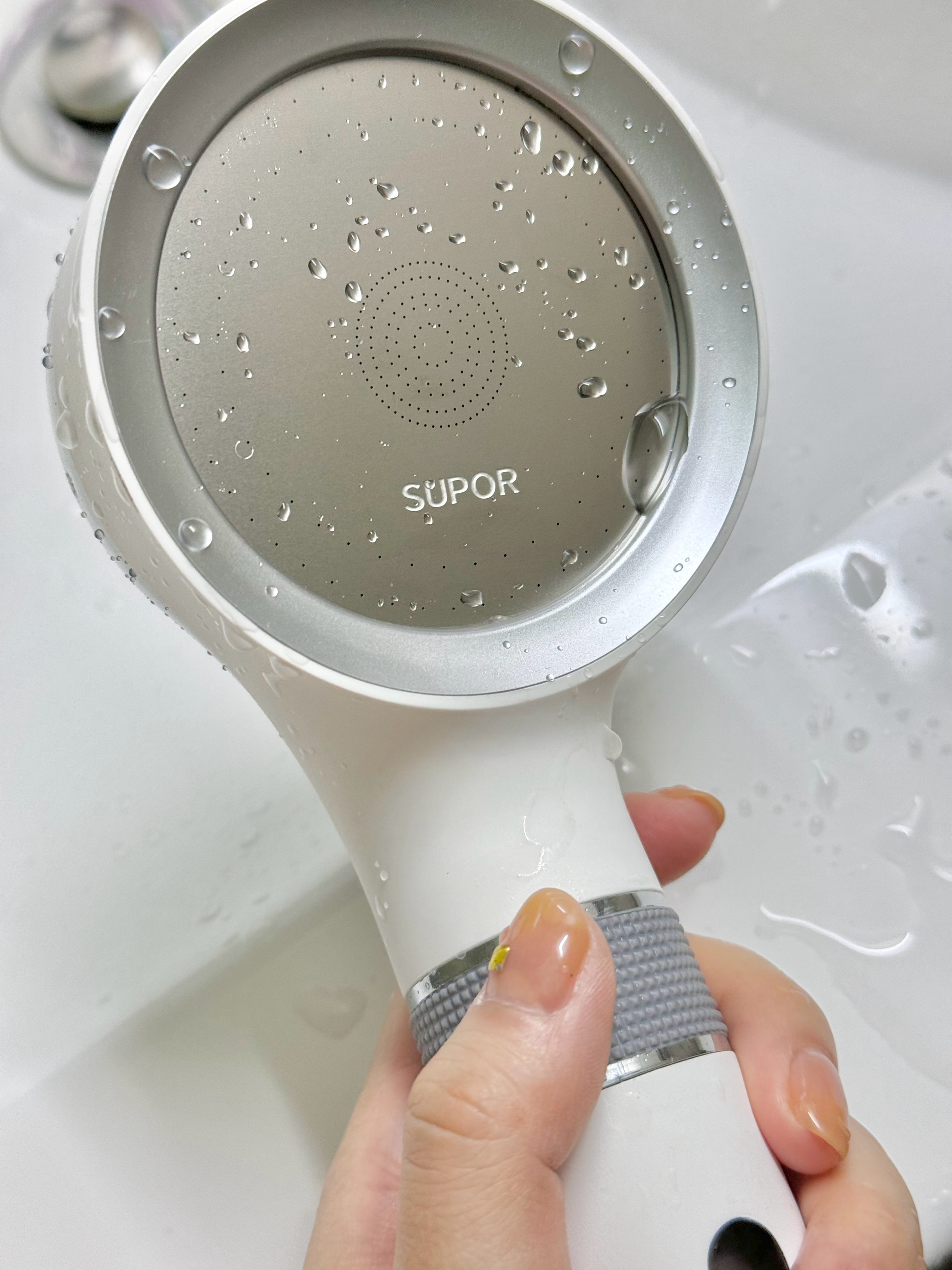 白色的颜值很高,很百搭[奋斗]先说说这几个月使用苏泊尔花洒真实的使用感受,喷洒上身的水柱细腻,洒在身上每一处都是很舒服的(敏.感.肌可用),没有“冲击感”不疼,再来水流是很稳定的,如果你家之前浴室水压偏小,那么换上这个增压效果很明显,水压变大的同时兼顾了绵软的洒水效果。