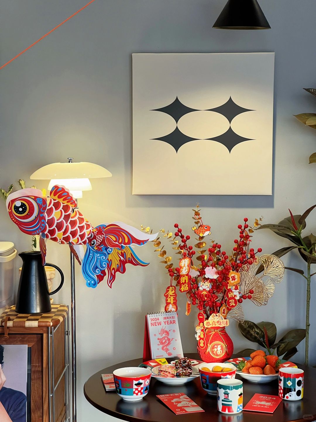 hello, 欢迎来到33岁独居大叔的家, 新年新气象, 为家里布置了一下新年场景, 虽然一个人住, 但家里也要有年味呀! 祝大家新年快乐,龙年大吉! -