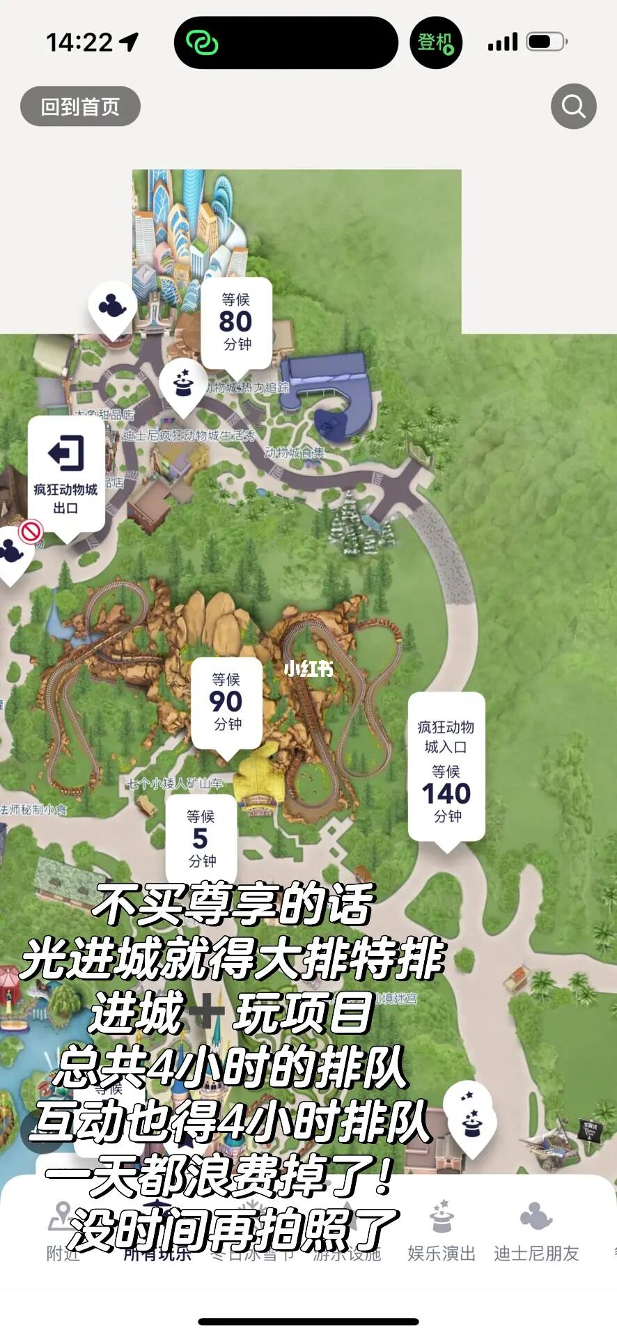 1️⃣进圆第一时间用迪士尼app绑定门票,绑定所有朋友成一个游玩组 2️⃣抢热力追踪的尊享卡(人多可能会买不到!) 3️⃣热力追踪的尊享卡会有规定时间,所以建议一入园就买,然后就可以按照上面的时间慢慢走到动物城丝滑入城! 4️⃣先不要着急玩热力追踪!没有玩热力追踪的话都是可以随意快速入城的! 5️⃣想拍照的,上午一入城就去排尼克朱迪互动!因为下午人太多,可能就截止排队了!!早上8.30尼克朱迪就上班了!我去的那天下午五点左右截止的,也有时候下午两三点就截止! 放寒假了迪士尼简直人从众!!! 所以建议大家都是买动物城的快通! 热力追踪的尊享卡是我在迪士尼花的最值得的180! 1.13入园人数💥多,懒人10点起床,11点才入园 当时进城排队已经120分钟了,果断买了速通 然后一进去就开始排互动…… 排了4小时终于见到朱迪尼克 拿出提前一天在全家买的吃的 一边排队一边解决午饭 排到后3分钟拥抱拍照然后就出城了(3pm) 😭这里建议提前和小伙伴彩排一下想拍什么样照片 我的小伙伴给我拍照没有对焦导致全部都是虚的 4小时啊!!!! 只能含泪购买188的乐拍通 工作人员会帮忙用手机拍视频和合照 这个不用担心! 互动结束后就在城里拍拍照, 拍完照片出去玩飞跃地平线和创 (或者其他你们喜欢的项目) 玩完5点左右就可以排下午的花车了 朱迪和尼克会开警车出来非常值得!! 看完朱迪尼克就可以去排小矮人矿车或者冲天抱抱龙 因为这会大家都在看花车,所以人会少一点 玩完差不多就黄昏了(6pm) 重新进园玩热力追踪,这会人是最多的 速通快去进入超级爽!! 不然大部分时间都要耗在动物城排队了!!