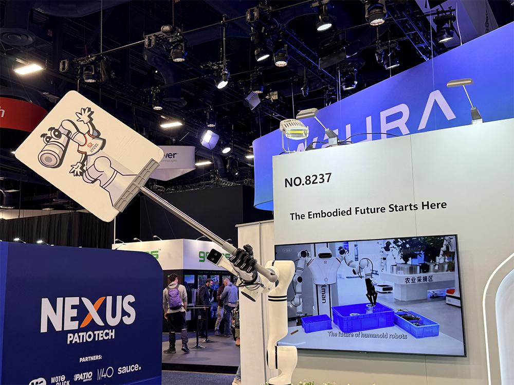 本次CES期间,睿尔曼还完成了从“北京—拉斯维加斯”跨洋实时遥操演示,通过构建“人形机器人数据训练中心—拉斯维加斯国际会展中心”的远程劳动力网络,使在北京的具身训练师可远程精准控制远在CES展台的RealBOT轮式折叠机器人执行“递送物品”、“传递水果”等真实场景作业。
