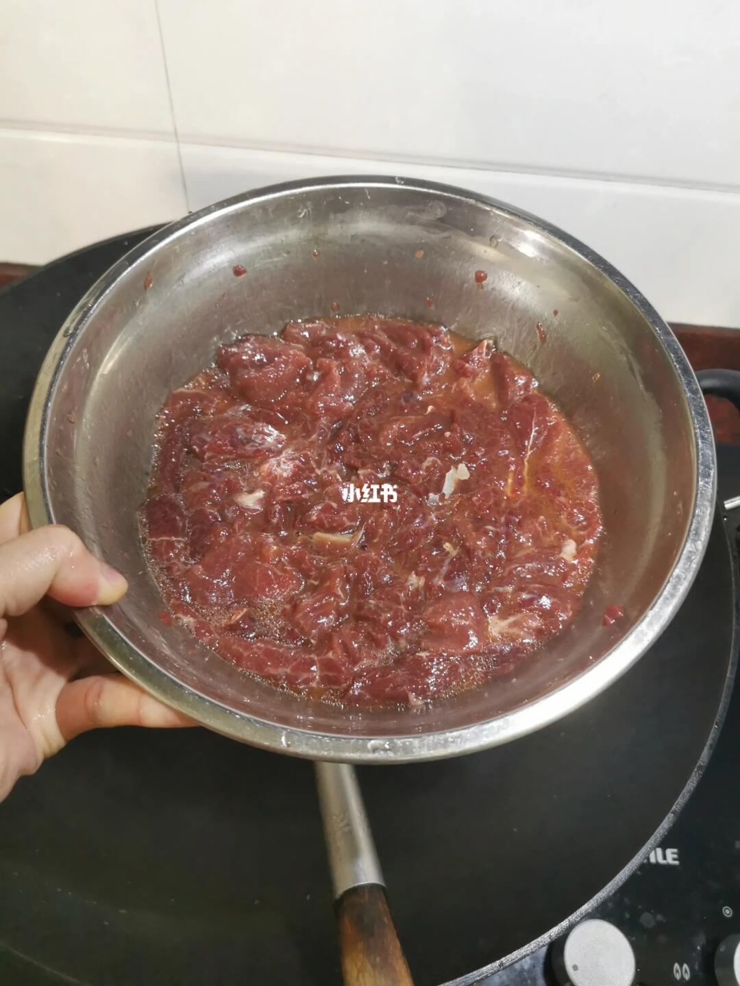 【1】、牛肉切薄片,加入少许淀粉水抓拌均匀,再加入少许白糖、白胡椒粉、蚝油、一点点酱油、一点点小苏打搅拌均匀,再加入花生油搅拌均匀锁住水分。
