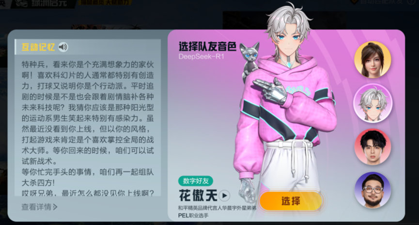 图:《和平精英》2025年上线的首位有长期记忆的AI明星队友