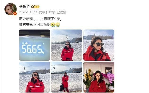 前面提到张馨予之前因为度假嗨吃,直接给自己吃胖了,甚至胖出记录。原来春节期间,张馨予和老公何捷一起去滑雪旅行,期间夫妻俩各种合体秀恩爱,不知道甜到了多少人。而当时的照片里,张馨予整个人看上去也是纤瘦无比,穿上厚厚的滑雪服也不见丝毫赘肉,整个人就是清瘦十足的既视感。