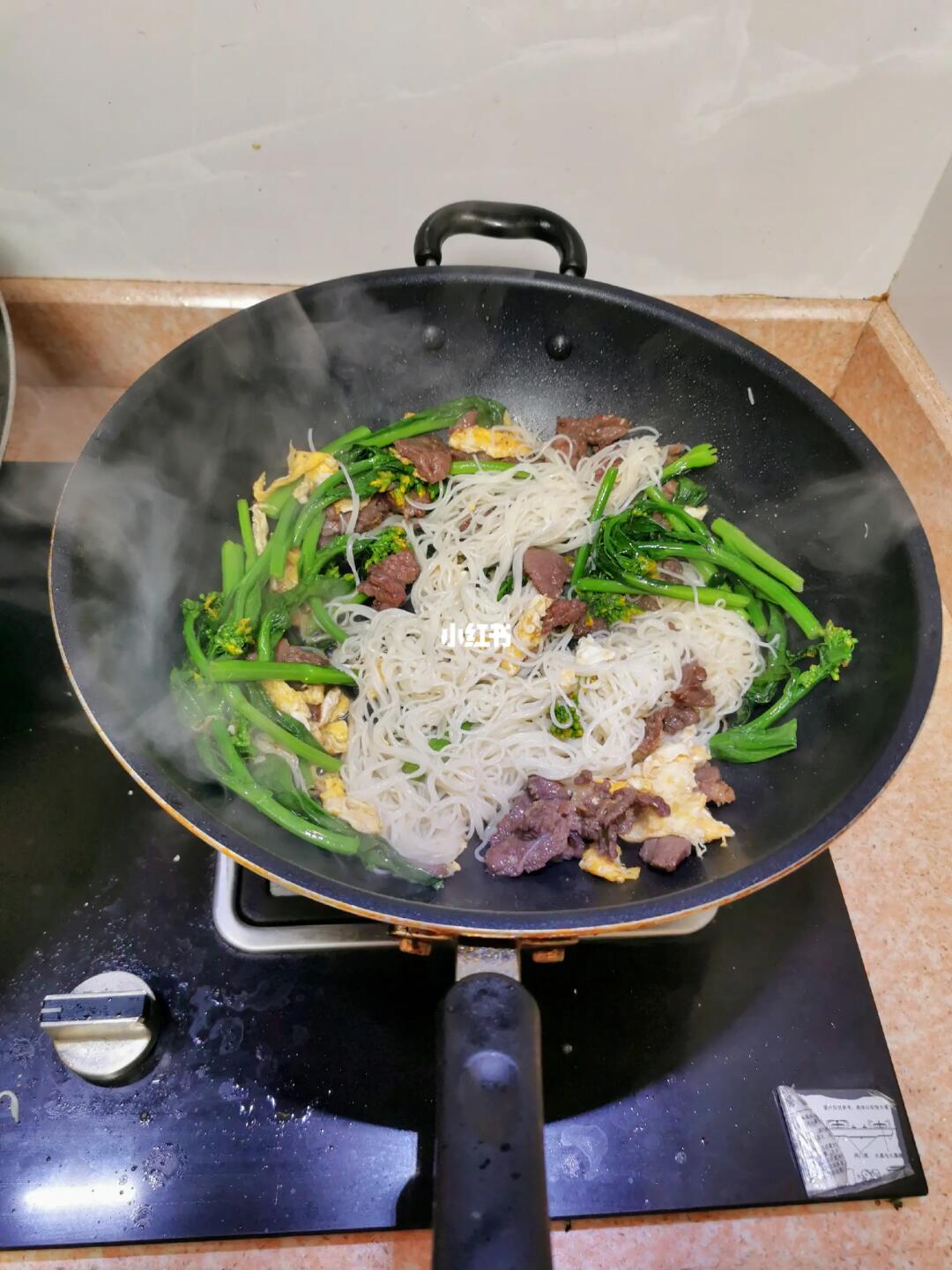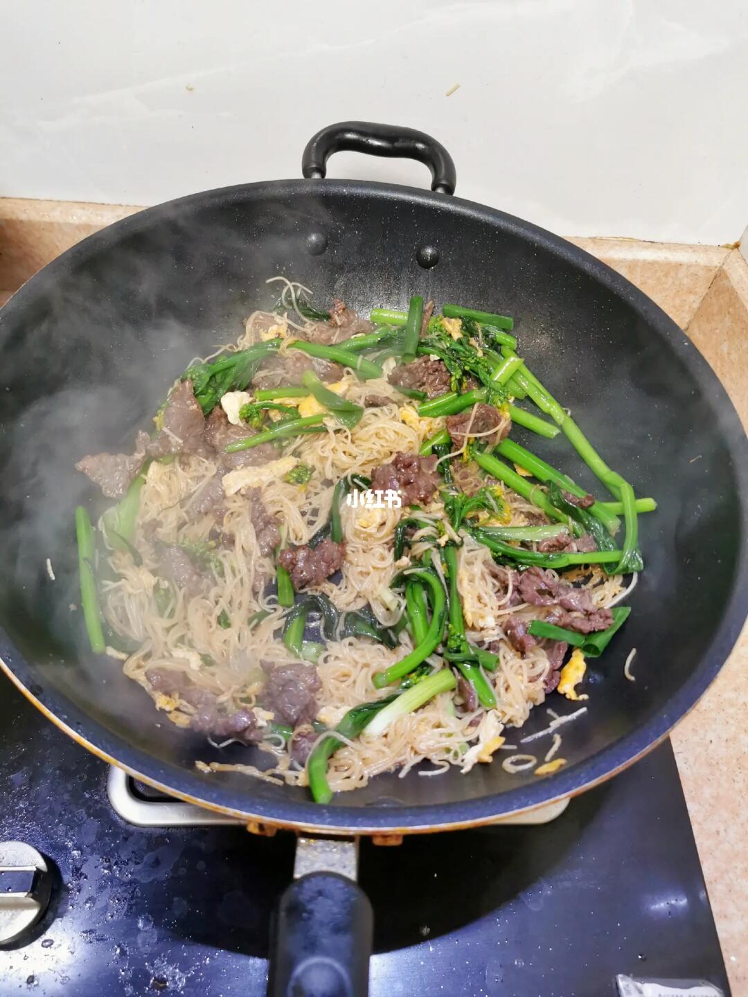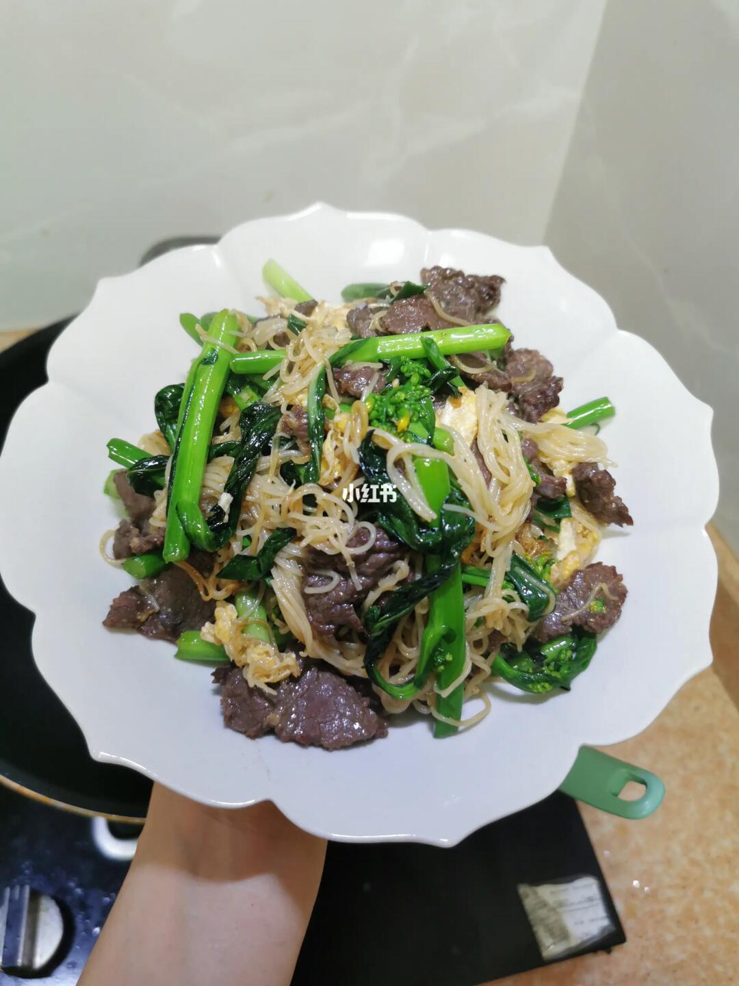 家里只有这种细面,炒出来还不错[派对R][派对R]就是少了点豆芽、胡萝卜跟包菜,今天广东降温厉害,实在不想出门,只能搜刮一下冰箱里有什么就炒什么吧,味道还真不赖,炒出来不会油汪汪,牛肉嫩滑,菜心也很清甜!