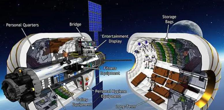 内部面积达到了330立方米,并且能够提供太阳能电池板、床铺、厕所以及两套动力推进系统,足够6名航天员在其中生活和相应的科研工作。
