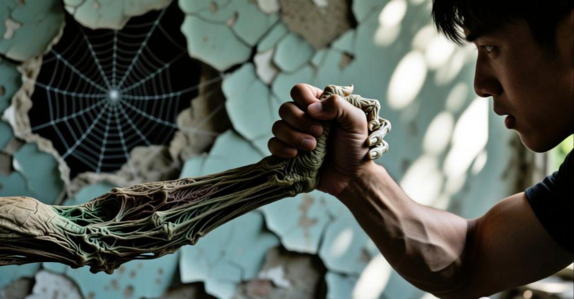 你看那个公公,他是那个封闭体系的守门人,他用暴力和恐惧构建了一套逻辑;儿子呢,他是那个试图打破体系的人,但他用的方式却是通过渗透和伪装。