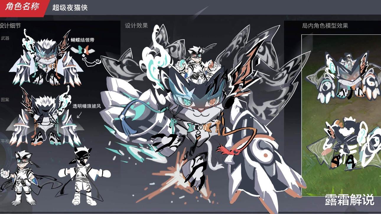 至于刘禅的皮肤,最终确定的方案叫做超级夜猫侠,如下图所示,这款方案的主题是超级英雄,把刘禅变成了一位以猫为灵感的超级英雄。