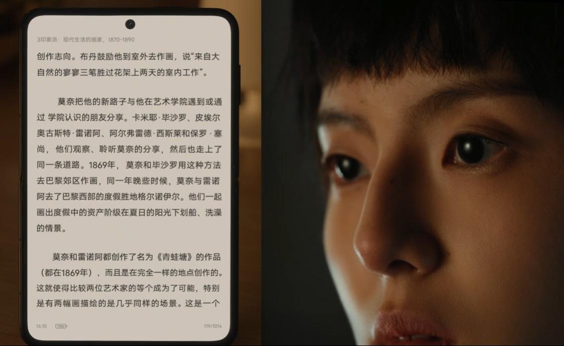 展开手机,新意随视野一同舒展。华为Pura X采用的16:10阔型屏,在日常使用中带来了实实在在的体验升级——竖屏浏览时,短视频与照片得以更饱满地呈现;横屏观影、游戏时,视野更开阔,沉浸感也随之加深。还有处理文档、阅读新闻或社交图文时,每一屏能容纳更多内容,信息获取与编辑效率自然提升。尤其在阅读场景中,这块屏幕不仅提供接近纸书的视觉感受,更能配合AI眼动翻页与护眼技术,让长时间阅读变得更专注更轻松:视线所至,页面自动跟随;显示效果动态调节,呵护双眼不易疲劳。