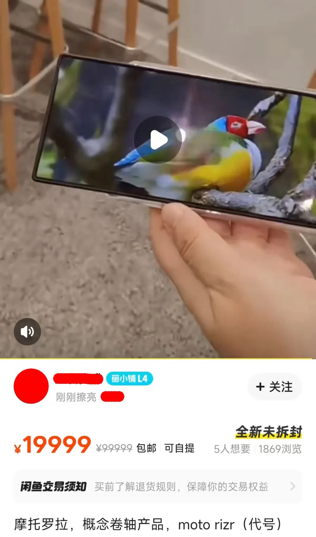 昨天写了个闲鱼卖1.9万的LG Rollable卷轴屏手机,没想到大家还挺感兴趣。今天我又找到另一种形态的卷轴屏手机,标价19999元也是离了大谱,写出来就当涨姿势。