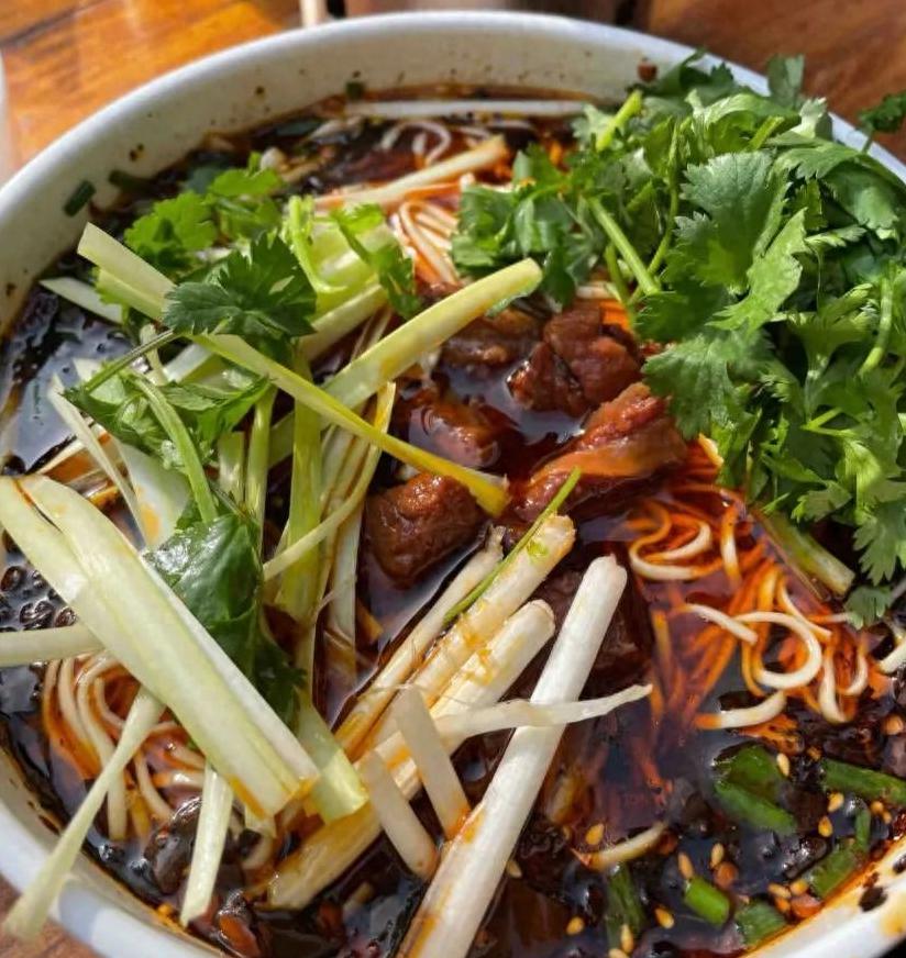 面条与炖煮软烂的牛肉,香辣浓郁的汤底,再加上熟油海椒的点缀,让人胃口大开。