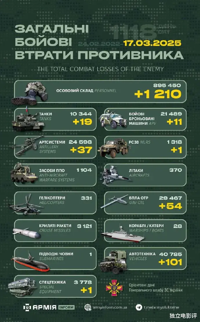 俄军人员损失+1210