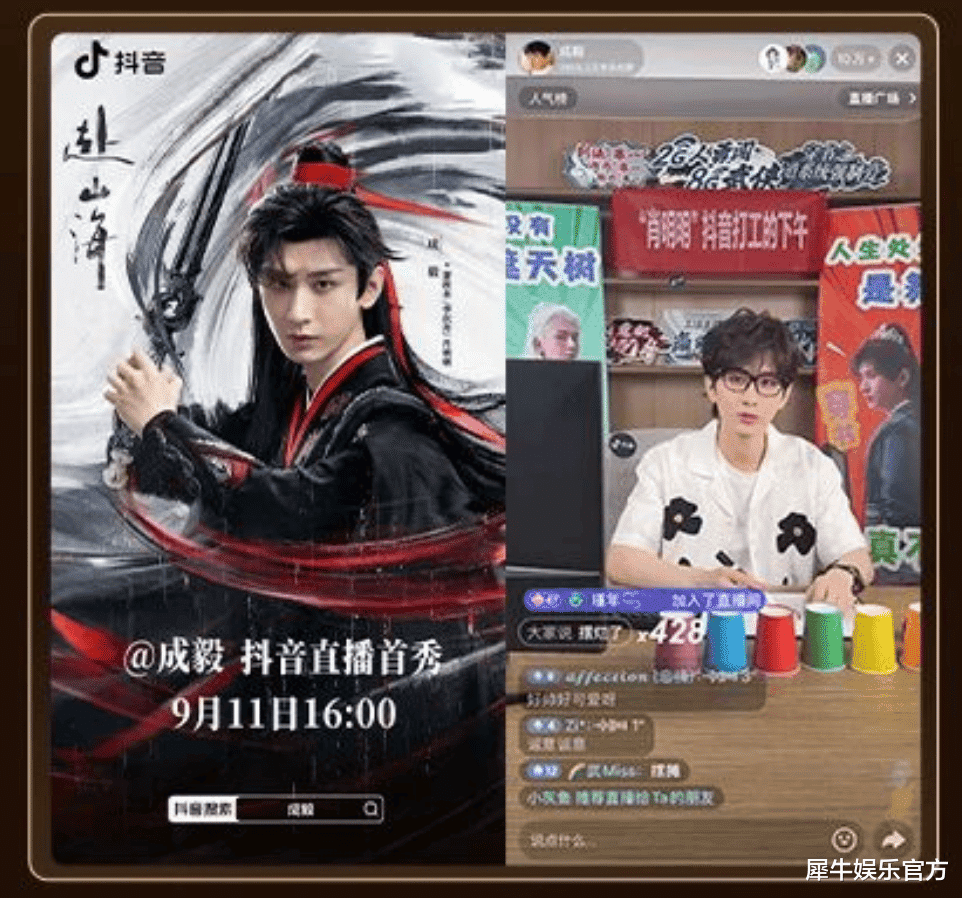 又如《赴山海》开播当天,男主成毅在其抖音个人账号开启直播首秀,全程以剧中角色“肖明明”身份模拟职场闯关任务,获得317万用户围观、最高在线人数达27万。《深情眼》中的张予曦和毕雯珺则是CP高频营业的优秀选手,从开播日起,两位就在抖音保持日更频率,涨粉数皆超百万。
