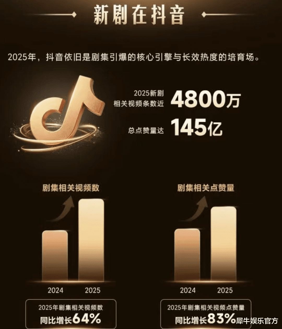 以剧集领域为例,2025年上线新剧相关视频条数近4800万条、总点赞量达145亿,分别较2024年同比增长64%和83%。