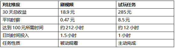 碎片时间变现方式对比:刷视频与试玩任务的收益分析