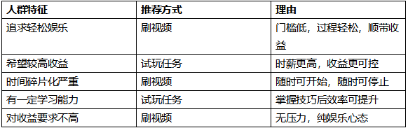 需要强调的是,选择哪种方式应基于个人需求和实际情况:如果追求轻松娱乐,刷视频是合适的选择;如果希望获得相对较高收益,试玩任务更值得考虑。
