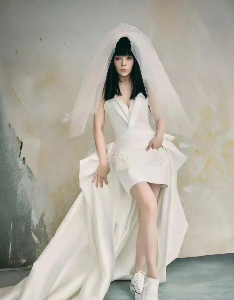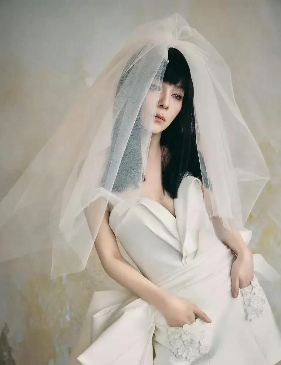王琳的婚纱造型火遍全网,雪姨穿上婚纱后直接变身婚纱女王了!黑头发蓝眼睛配上白色婚纱,美得不得了!