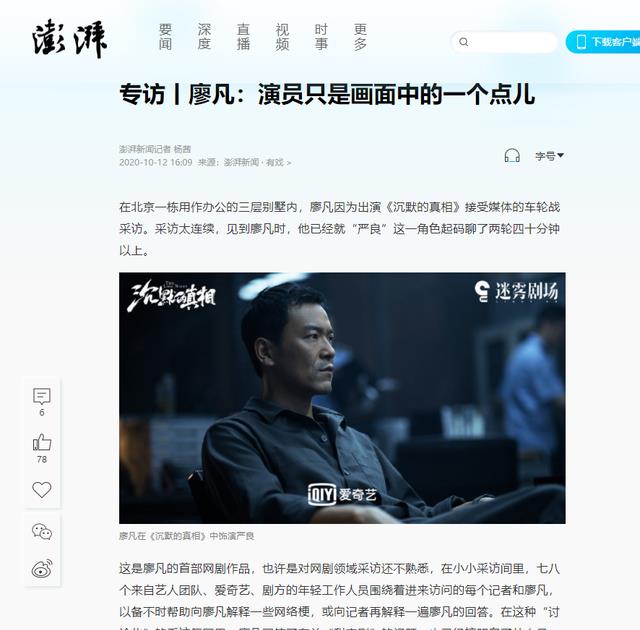 专访丨廖凡:演员只是画面中的一个点儿——澎湃新闻