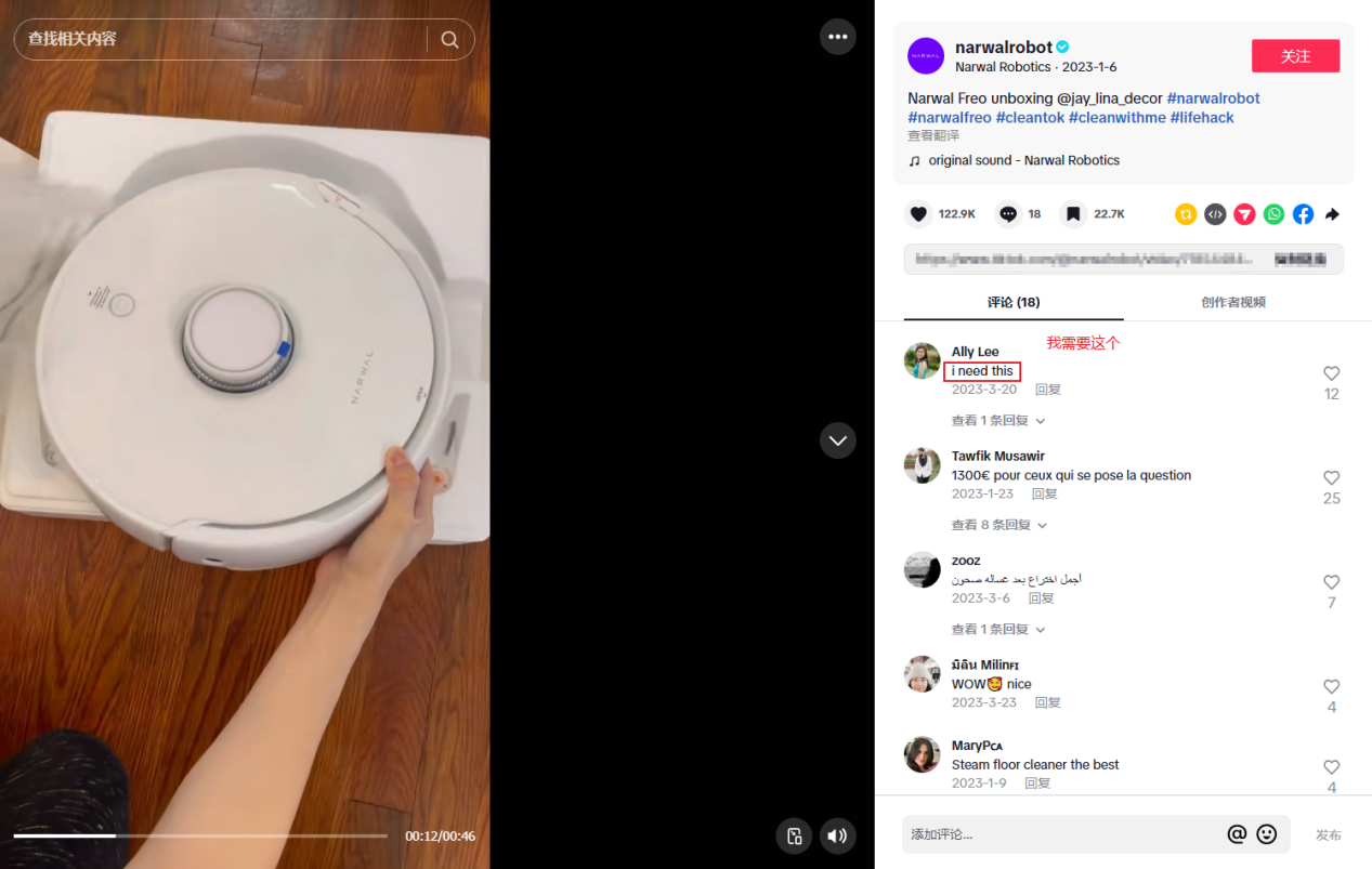 就像TikTok这一海外顶流社媒平台,就为不少品牌的崛起添了一把火,Narwal亦是借势而上的一员。