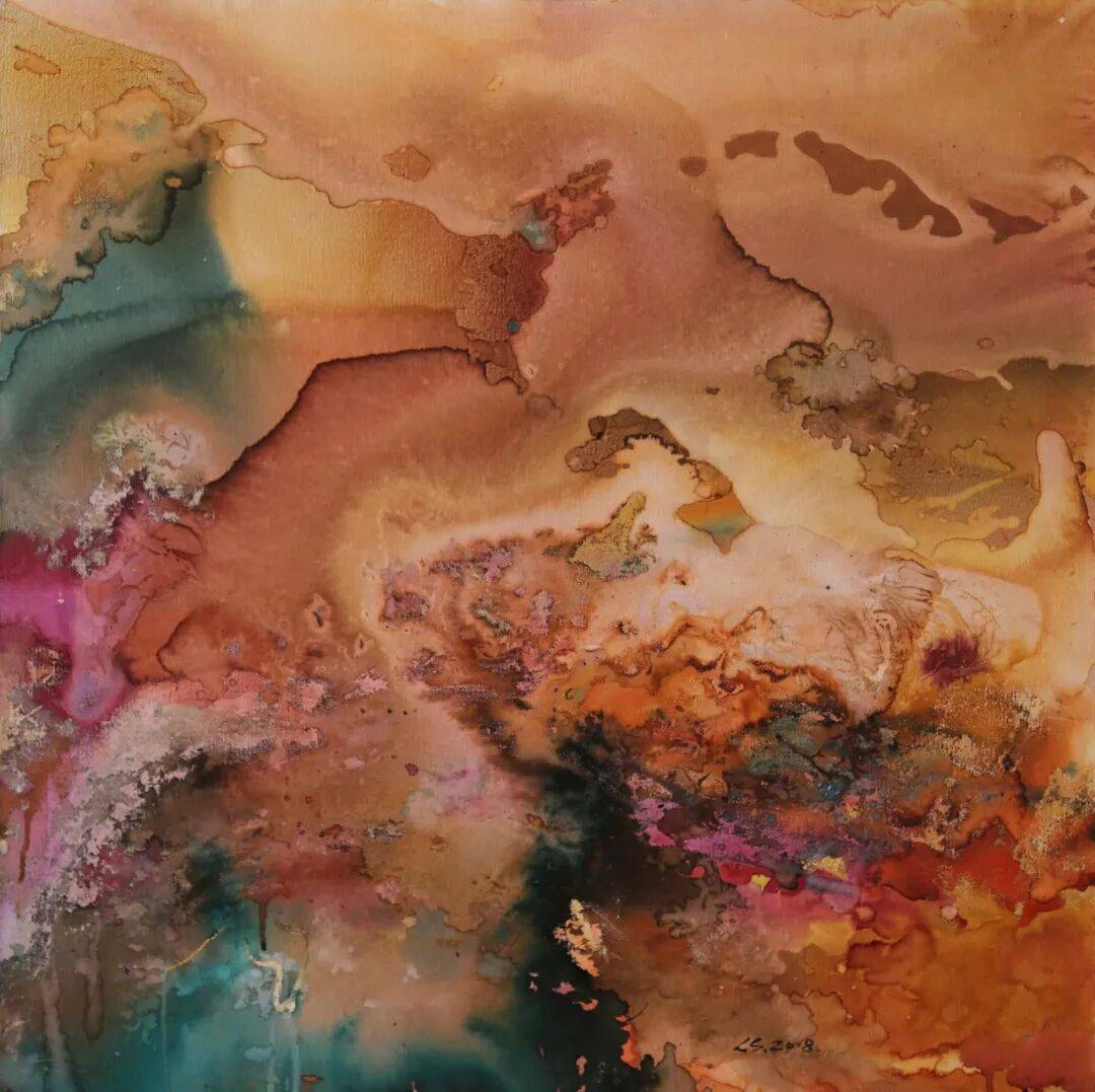 “意象”绘画所形成的视域或场域并非静止的符号堆砌,而是动态的视觉审美的生成过程。在“源”系列作品中,常颂通过色彩的虚实与冷暖对比营造空间意境,以肌理的叠加暗示时间流逝,使二维平面承载起多维的感知体验。这种创作方式打破了“写意与写实”的二元对立,使绘画链接主体情思与客体物象。在他的作品中,通过虚实相生的意象,氤氲变幻的色层,书写自如的笔触,营造出“可游亦可居”的空间和“静谧而幽深”的意境。引导观者从视觉感知过渡到心灵共鸣,在“意象之域”中完成从“眼中之象”到“心中之象”的升华。