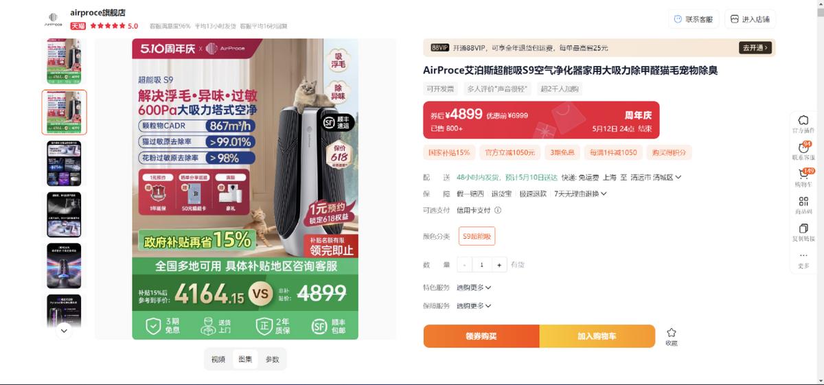如果你是养宠家庭,尤其是多猫多狗家庭,空气中毛发、异味困扰明显,那更推荐选择 S9。售价4899元(国补价更低)的艾泊斯超能下S9,设计初衷就是“为宠物家庭定制”。它具备600Pa超强吸力,配合三面进风和底层水洗初效滤网,可以快速吸附室内漂浮毛发并反复水洗使用,又能保证出风柔和无风感,不会造成毛发飘散或直吹宠物,避免给人体和宠物带来不适感。内部搭载3面H13级HEPA滤网,高效去除细菌、病毒、过敏原等颗粒物,长效保证出风口0颗粒出风,有效避免宠物之间或人与宠物之间的交叉感染。