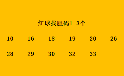 10 16 18 19 20 26 28 29 30 32 33选胆码1-3个,落选码可直接排除,反之也可以理解为杀不掉的就是胆码!