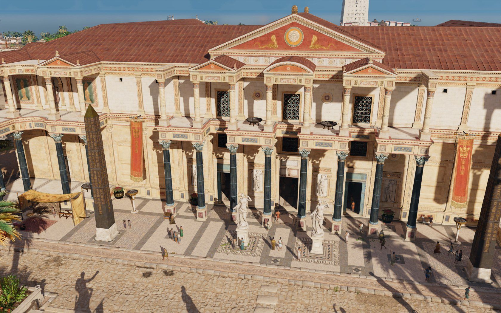 在游戏中,育碧精心还原了托勒密王朝时期亚历山大城最具标志性的街道,卡诺皮克大道。这条大道是整座城市的脊柱,贯穿东西,连接港口与皇宫区,宽达30米,可容纳多辆马车并行,是古代世界最宏伟的城市规划之一。卡诺皮克大道的设计体现了希腊化城市的严谨布局,两侧矗立着高大的柱廊、神庙与公共建筑。
